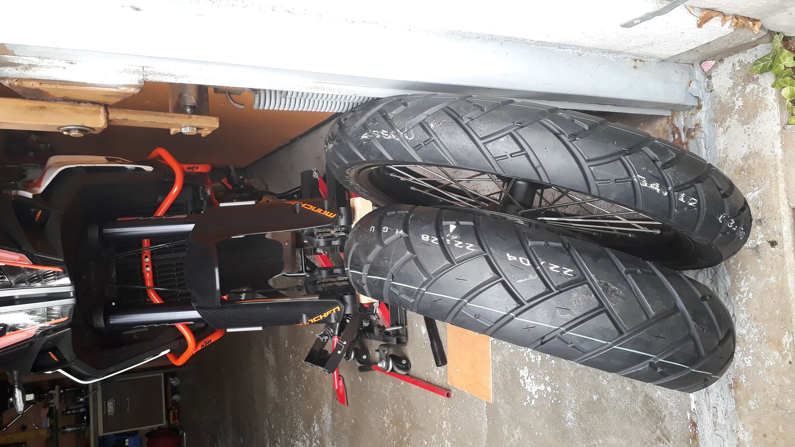 Ich habe jetzt den zweiten Satz Trailrider drauf. Die Reifen sind sehr handlich und bauen schnell GRIP auf. Ich meine sie liegen irgendwo zwischen CTA2 und PST2. Auf Bitumen reagieren sie etwas nervös. Bei Nässe sind sie auch in Ordnung. Auf Schotter bieten sie meines Erachtens mehr Seitenführung und Traktion als einige andere in diesen Dimensionen. Beim ersten Satz war wohl der Vorderreifen nicht richtig gelagert, der fing dann ab ca. 4000 km zu Hoppeln an. Der zweite Satz hat jetzt um die 4000 Kilometer drauf und ist bis jetzt unauffällig. So schauen sie jetzt aus.