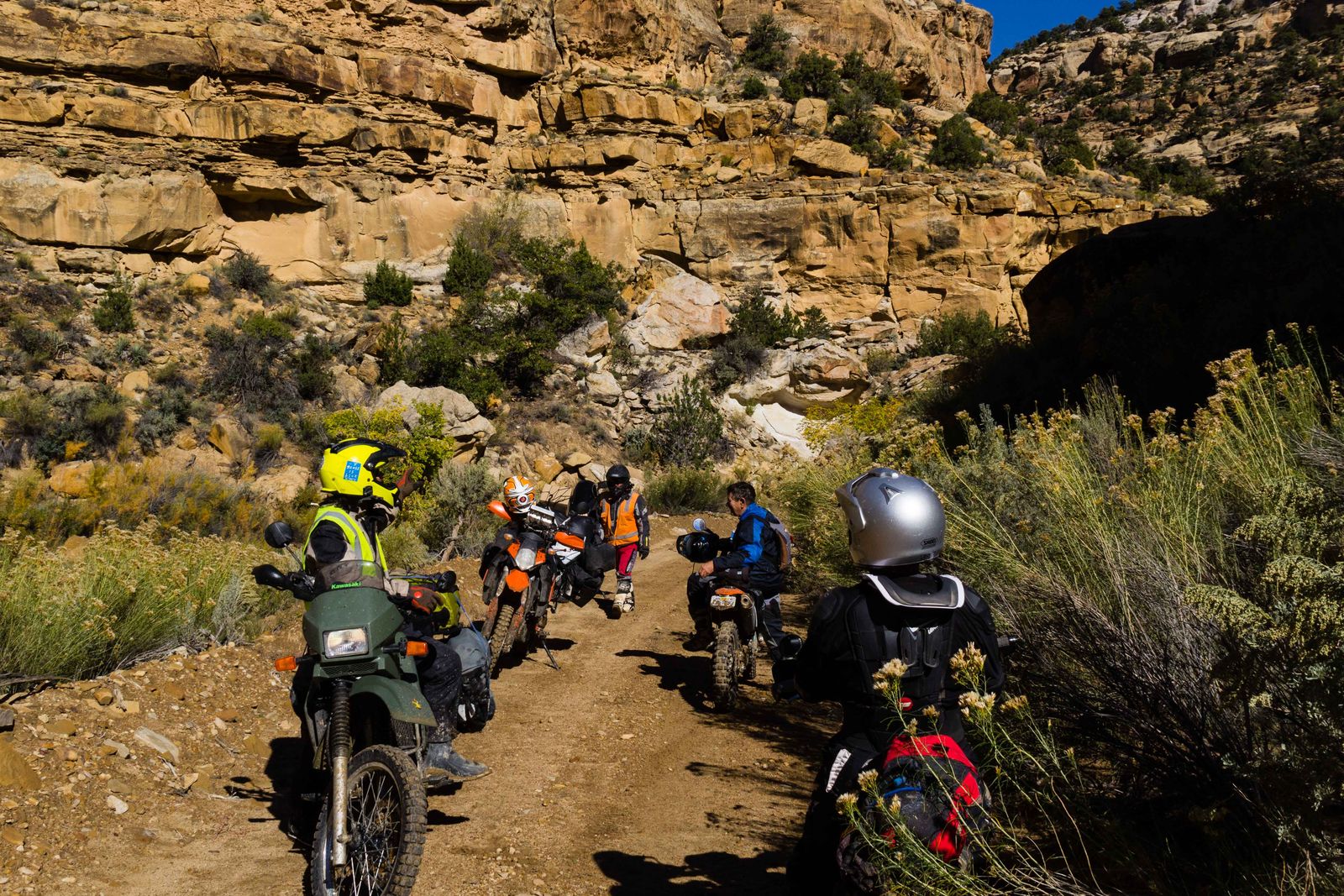 Wie's der Zufall will, habe ich in Escalante, Utah, die Jungs mit den KLRs wieder getroffen. Wir hatten das gleiche Ziel und den gleichen Zeitplan, haben uns zusammengetan. Reiseroute von Escalante nach Las Vegas auf dem TAT, um genau zu sein, auf dem von KevinGPS veröffentlichtem Abzweig vom TAT nach Californien statt nach Oregon.