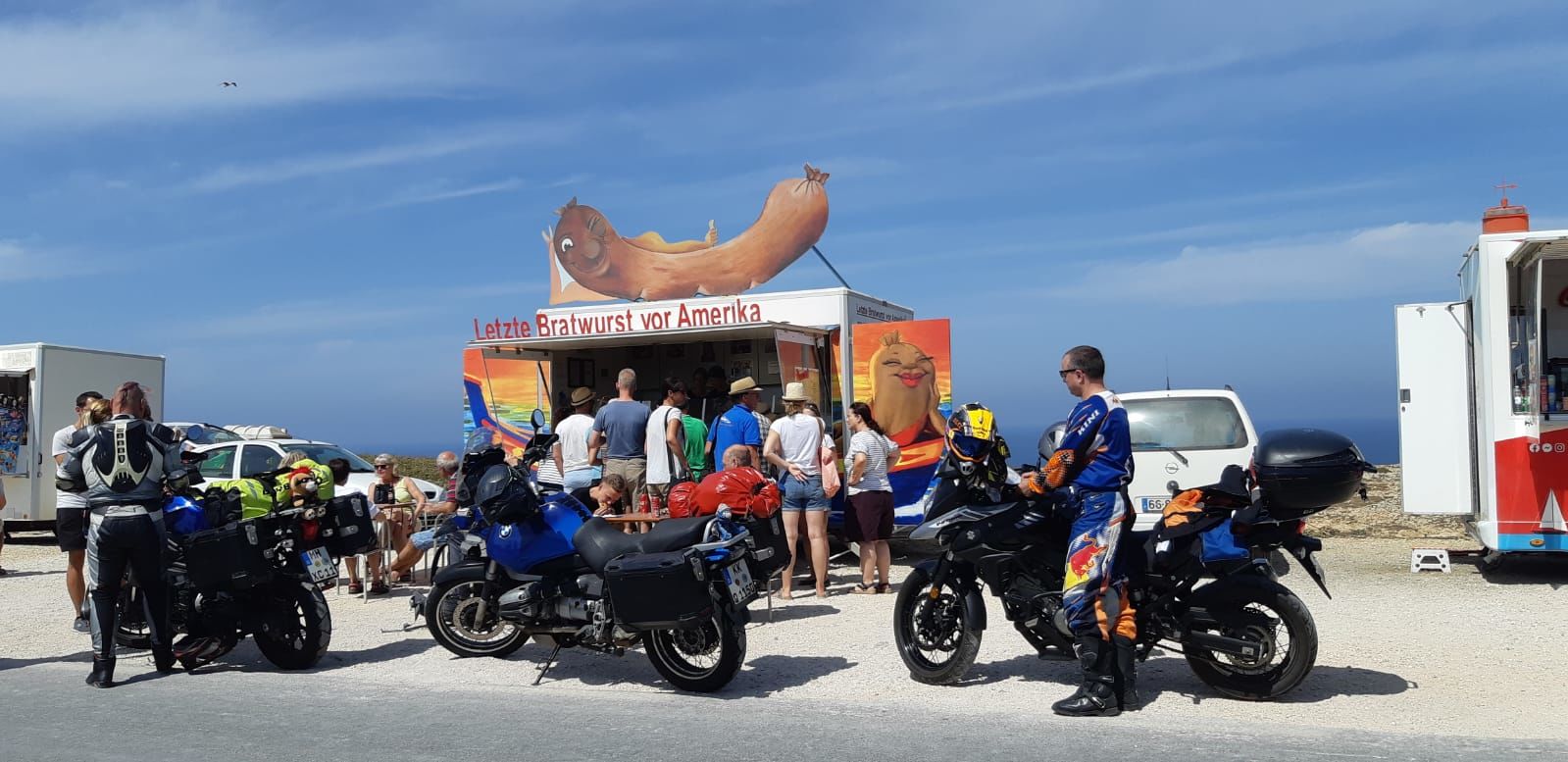 .... Die großen Tanks sind für ein anderes Projekt.... Ich bin schon drei mal mit dem Auto und Anhänger bis Malaga gefahren und dann weiter mit dem Motorrad in Spanien und Marokko unterwegs gewesen.... Das heißt bis nach Spanien 3400 km mit dem Auto über 30 Stunden reine Fahrzeit.Dann kommen noch 1000 Euro an Spritt und Autobahngebühr hinzu. Für das Geld mach ich in Portugal eine Woche Urlaub mit Hotel, Flug und Motorrad.Ich muss mir keinen Kopf machen ob am Auto und Motorrad was kaputt geht. Natürlich hätte ich lieber mein Motorrad hier dabei und auch auf den Fotos. Aber man kann halt nicht alles haben vor allem wenn man nur eine Woche unterwegs ist.