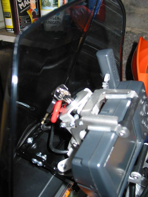 Weil es mir aber zu sehr wackelte auf schlechten Strassen, habe ich inzwischen den Halter soweit zur Scheibe hin verkürzt, dass ich gerade noch an den Schlüssel rankomme.
