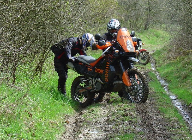 andere Fahrer ( DR 650 ) waren aber mit den Verhältnissen nasser Lehmboden völlig überfordert (2,02m Körpergröße liesen ihn tief fallen)