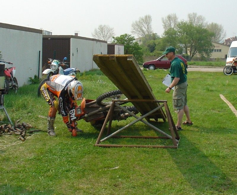 Die Wippe war wohl nur bis 200 kg zugelassen. Da aber die Jungs mit den EXC´s dabei so ihre Probleme hatten, wollte ich mal zeigen, wie das mit einem "richtigen Motorrad" geht...