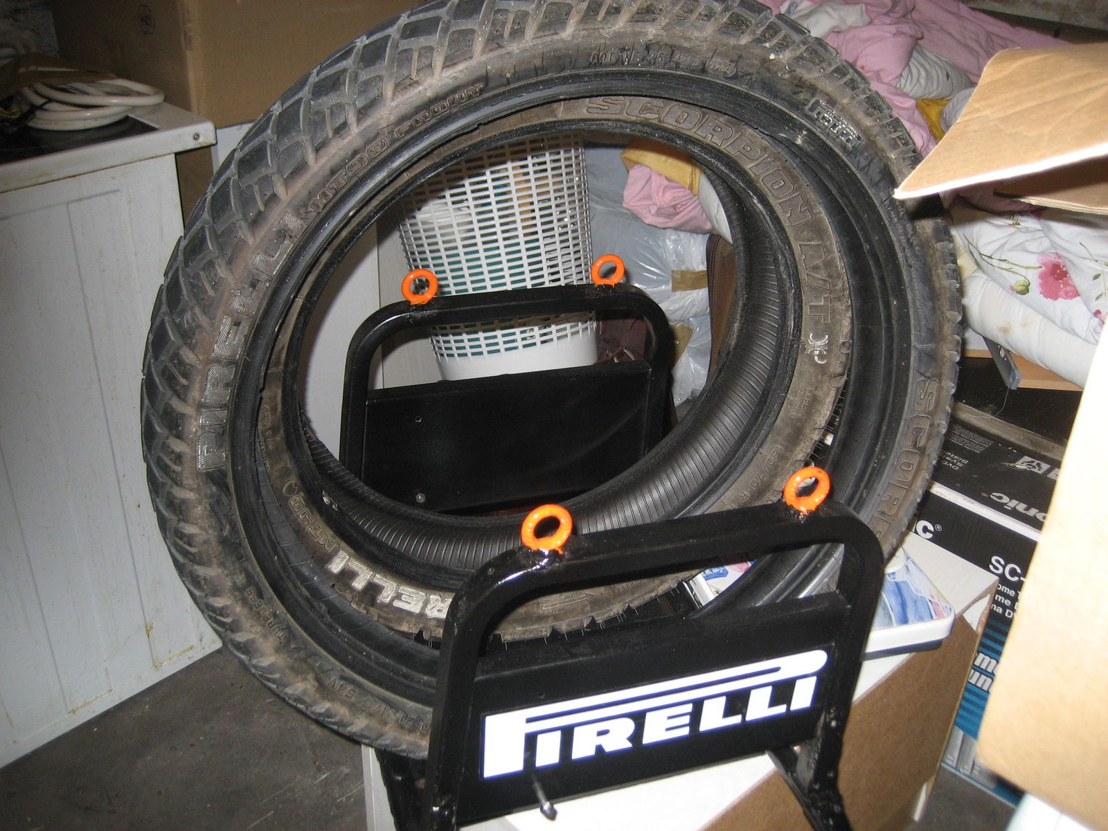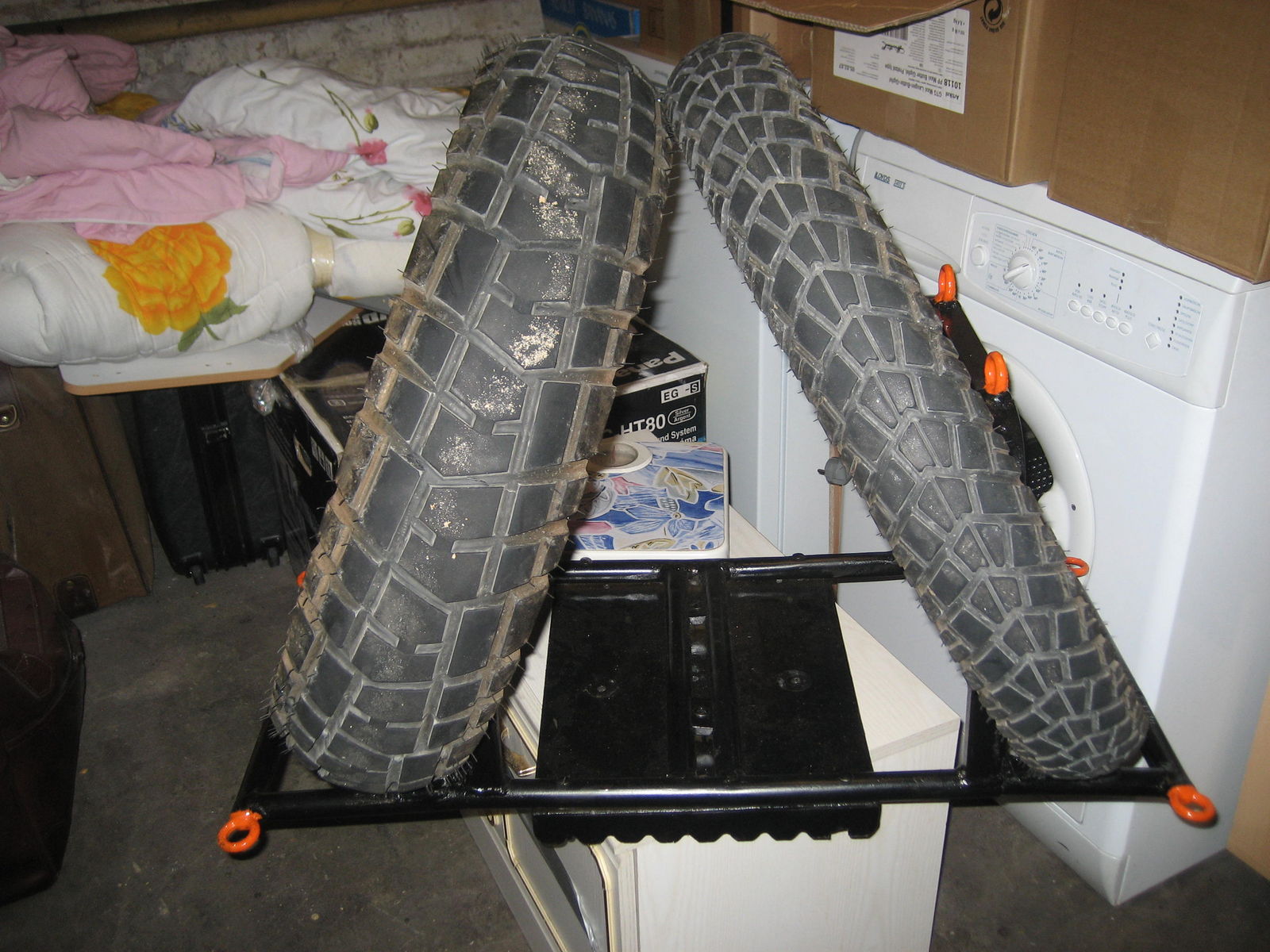| Schradt @ Sa, 23. Jun 2007, 17:12 hat folgendes geschrieben: | Vorderrad liegt auf nem 2,5cm dicken, mit nem alten Schlauch überzogenen Brett auf der Givi Topcaseträgerplatte.