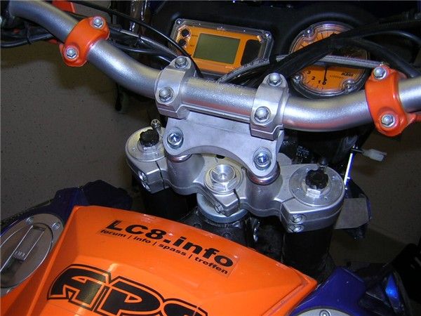 Allerdings verstehe ich nicht wie andere das Teil mit der 18er KTM oder anderen Erhöhungen noch fahren können. Das Teil ist genial und sauber verarbeitet, aber eine Erhöhung über 30 mm scheint mit weder praktisch noch optisch gut. Außerdem sind bei meiner GO!!!! die Züge und Kabel dafür zu knapp. Vielleicht liegt es auch an der Kombination mit dem MX2. Die insgesamt 46 mm waren mir außerdem doch zu sehr "Chopperlike" so a la "NiewiederAchselSchweißLenker". Auf jeden Fall besorge ich mir jetzt noch die passenden Schrauben und montiere das Teil ohne die 18 mm von KTM.
