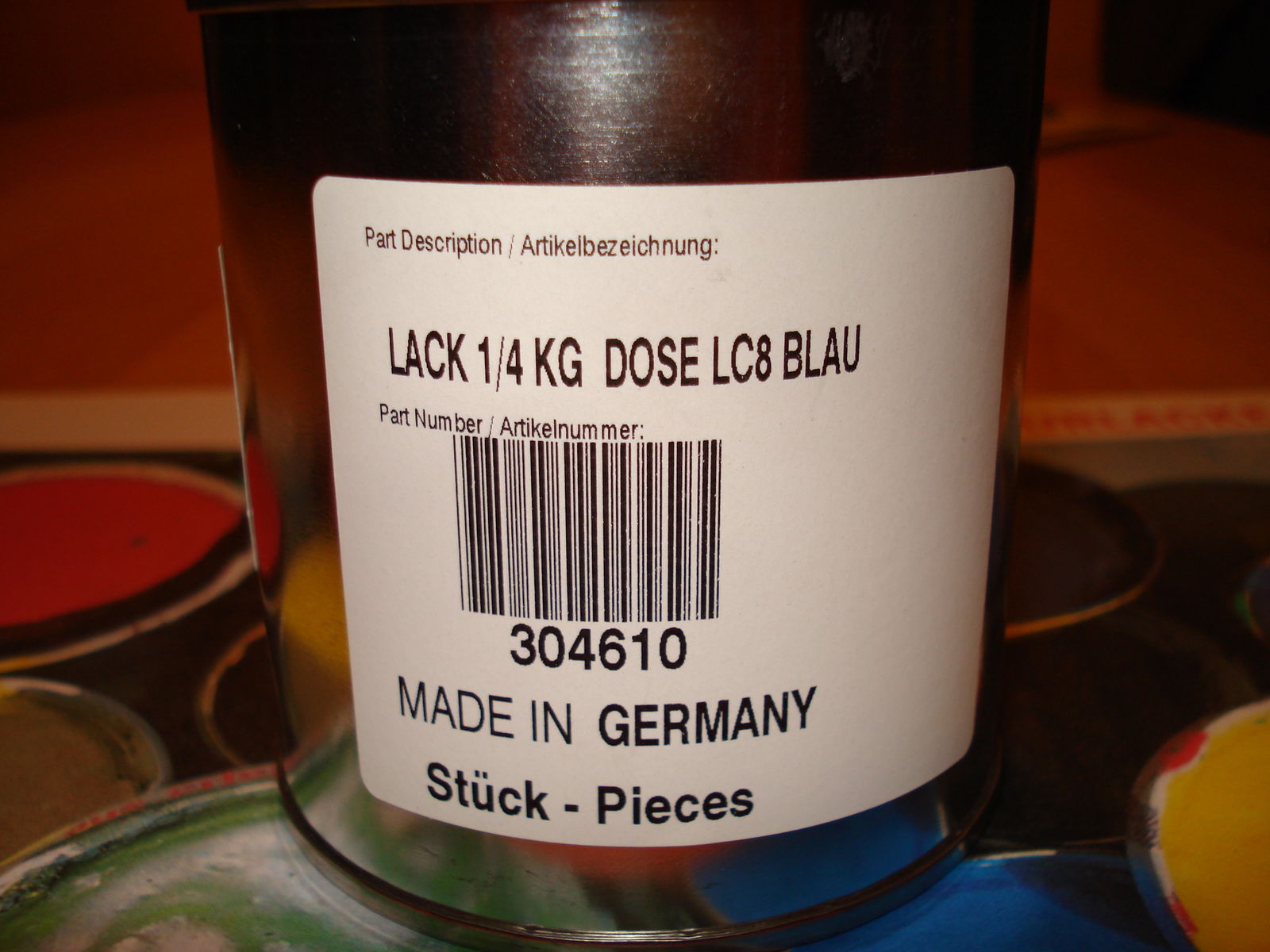 By the way: Soweit ich weiß sind die anderen Farbmischungen für die LC8, abgesehen von dem Gauloises-Ton - Silber und Orange z.B., von Standox. Nicht, dass es da zu Verwechslungen kommt... Wink