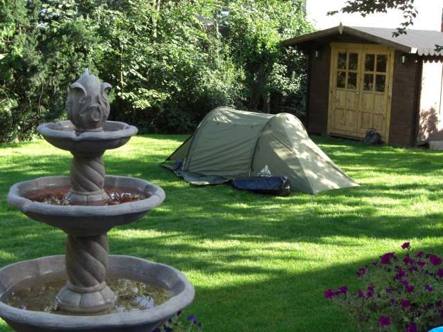 Schnell das Zelt aufgebaut (ich habe aber angeboten im Haus zu schlafen) Essen, 2-3 Bier und ab ins Zelt.