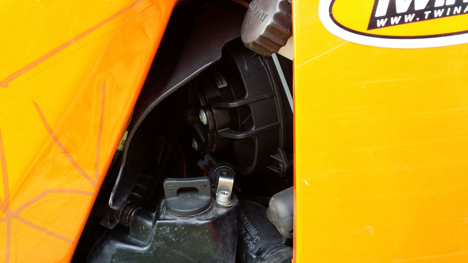 Mal sehen, was ich jetzt als Luftableiter anbringe.......Hitzeschutzmatte oder KTM-Abweiser......mal sehen.