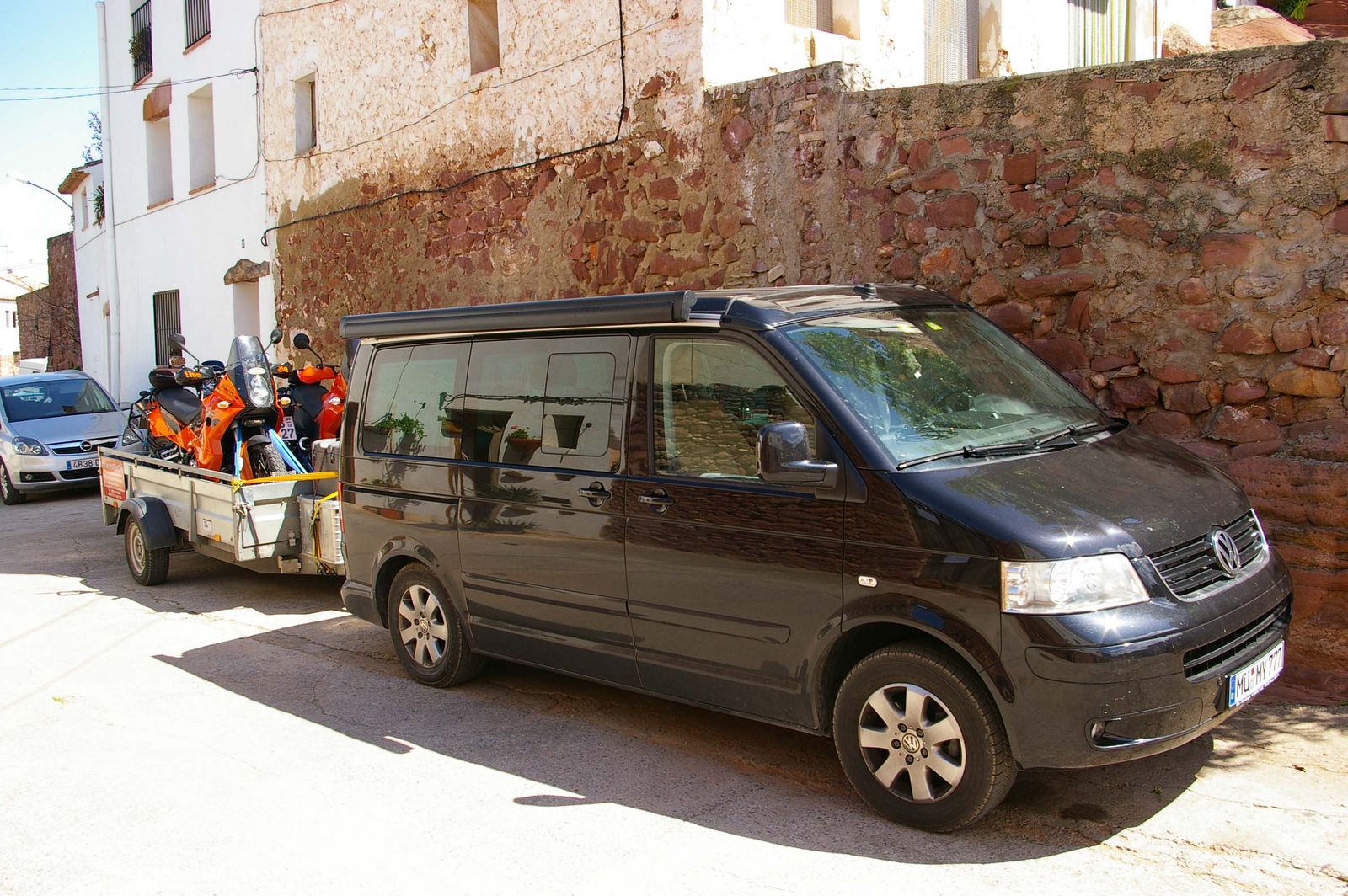 Darum haben wir uns einen Anhänger angeschaft. Wir reisen meist mit 2 o 3 Mopeds. Ziel: Castellon (80km nördlich v Valencia) Wir haben auch schon alle möglichen und unmöglichen Versionen durchgedacht und durchgerechnet. Da wir das Glück haben zu viert mit 3 Moped´s reisen ist nichts andere billiger als Hänger ans Töff rein in die Dose und los geht´s. Kaum 19 Stunden später sind wir schon am 1860km entfernten Ziel Wink