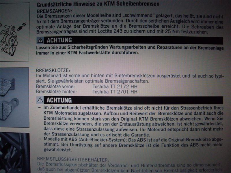 ...wie bitte? Das issn Joke, oder? Wie sind die Bremsen denn orginal belegt? Ich denke doch Sinter! Die Betriebsanleitung kann nicht lügen! |
