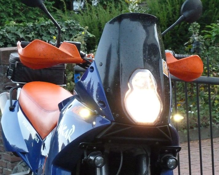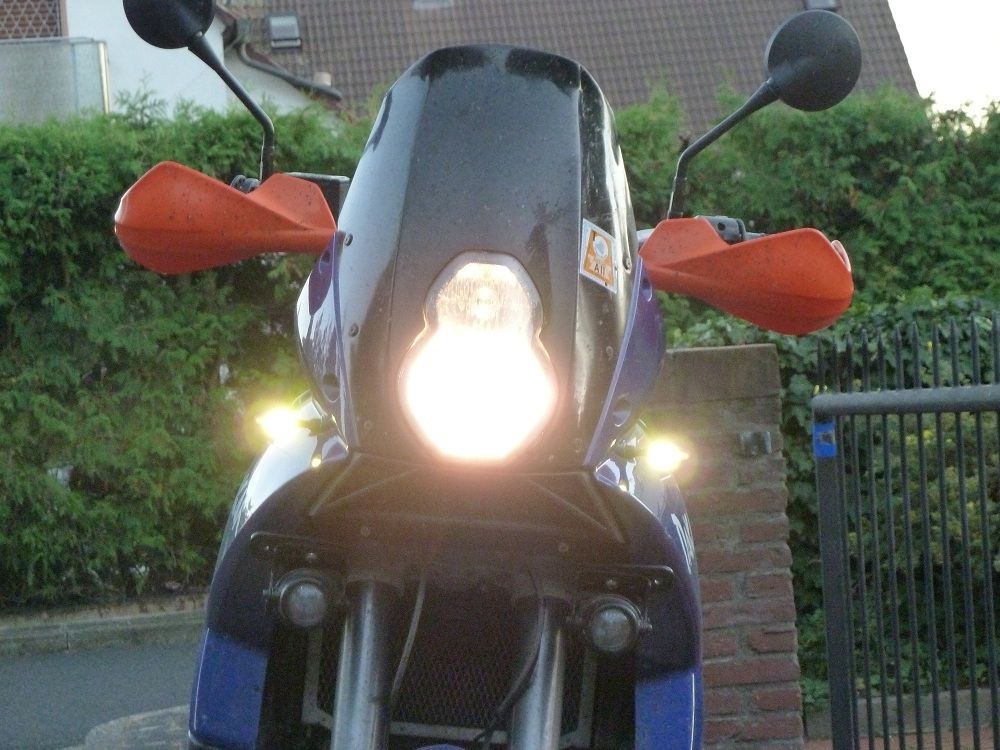 Die TT-Rallyemaske mit Xenon-Fernlicht kommt dann noch dran (ohne Standlicht!), und ein IMO 100. Dadurch muss ich dann das komplette Cockpit umgestalten. Da bin ich noch am Grübeln, wie ich IMO, RB und Navi unterbringe... Ach ja, ein 45er Kettenrad wird dann das 42er ersetzen. Ja, die Winterabende werden kurzweilig ;-)