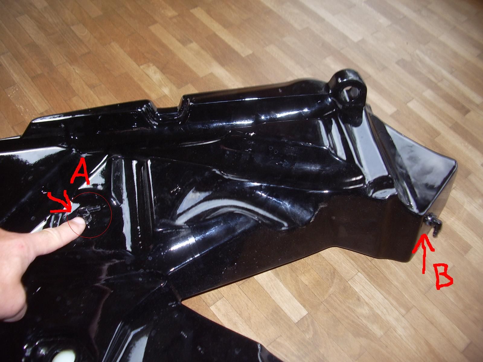 so jetzt noch mal ein paar Pics vom linken Tank, jetzt brauchst bloss noch´n Blase Hase. Hab mal aufgemalt welches loch wo rausbläst