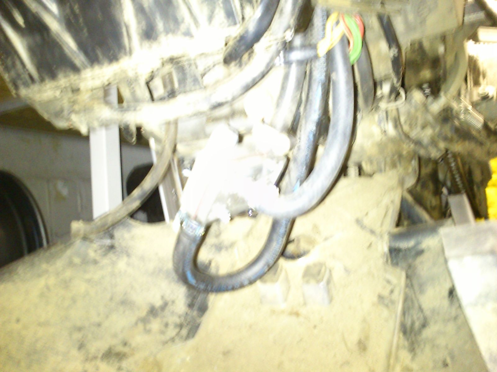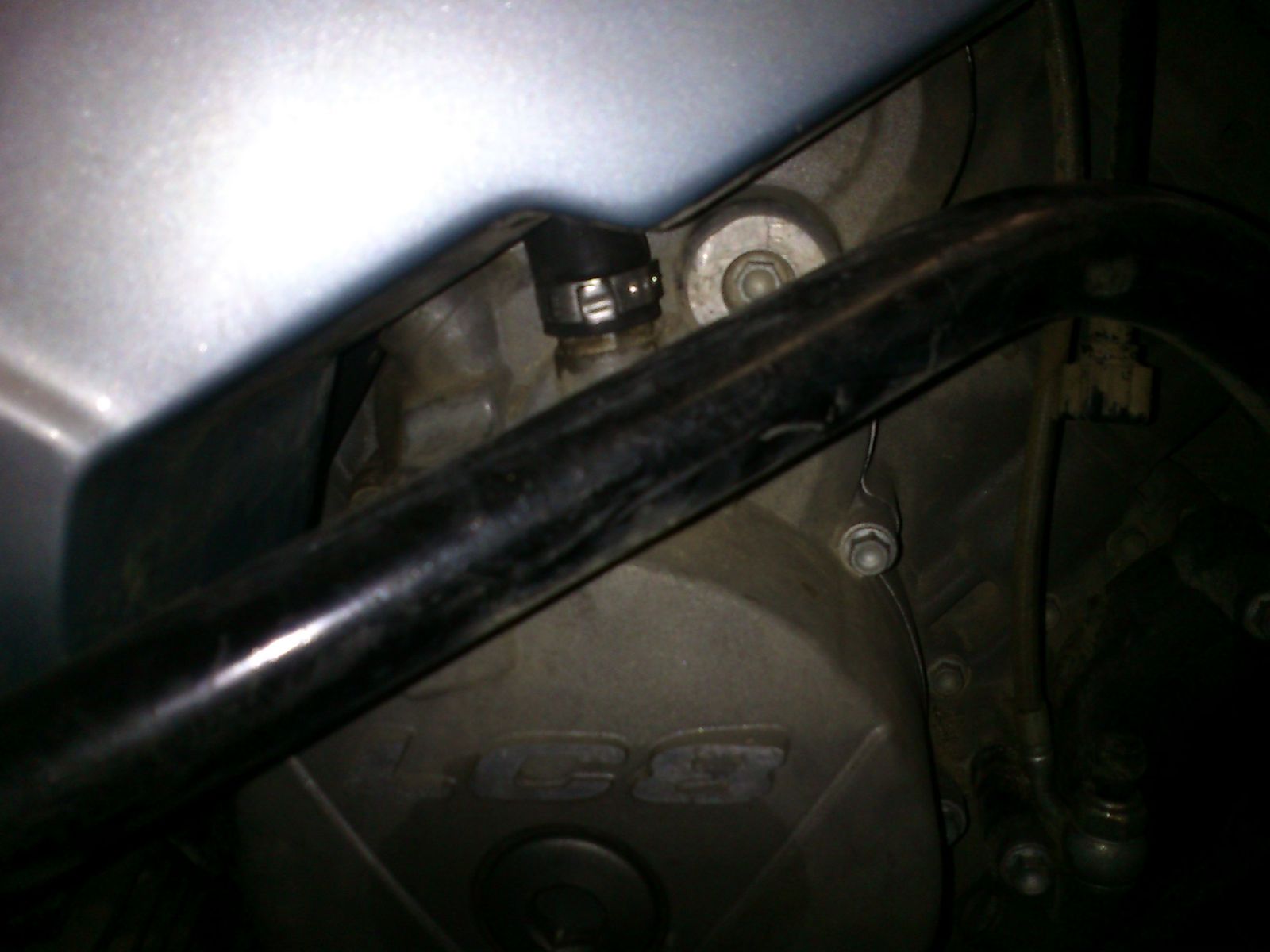 dicker Schlauch zum Kurbelgehäuse entlüften der oben auf den LuftfilterKasten geht. Den hab ich abgebaut und den oberen Bogen der die richtige Biegung hat auf die Hülse der Entlüftung gesteckt.