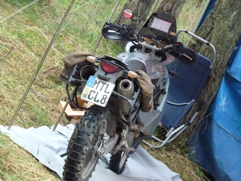 Olli hat alles gegeben und hat sinnigerweise zwischen CP1 & CP2 abgebrochen. Stefan ist gestürzt und einem Schlammloch unter dem Mopped zu sich gekommen. Wie er das sauber bekommen hat soll er selbst erzählen.