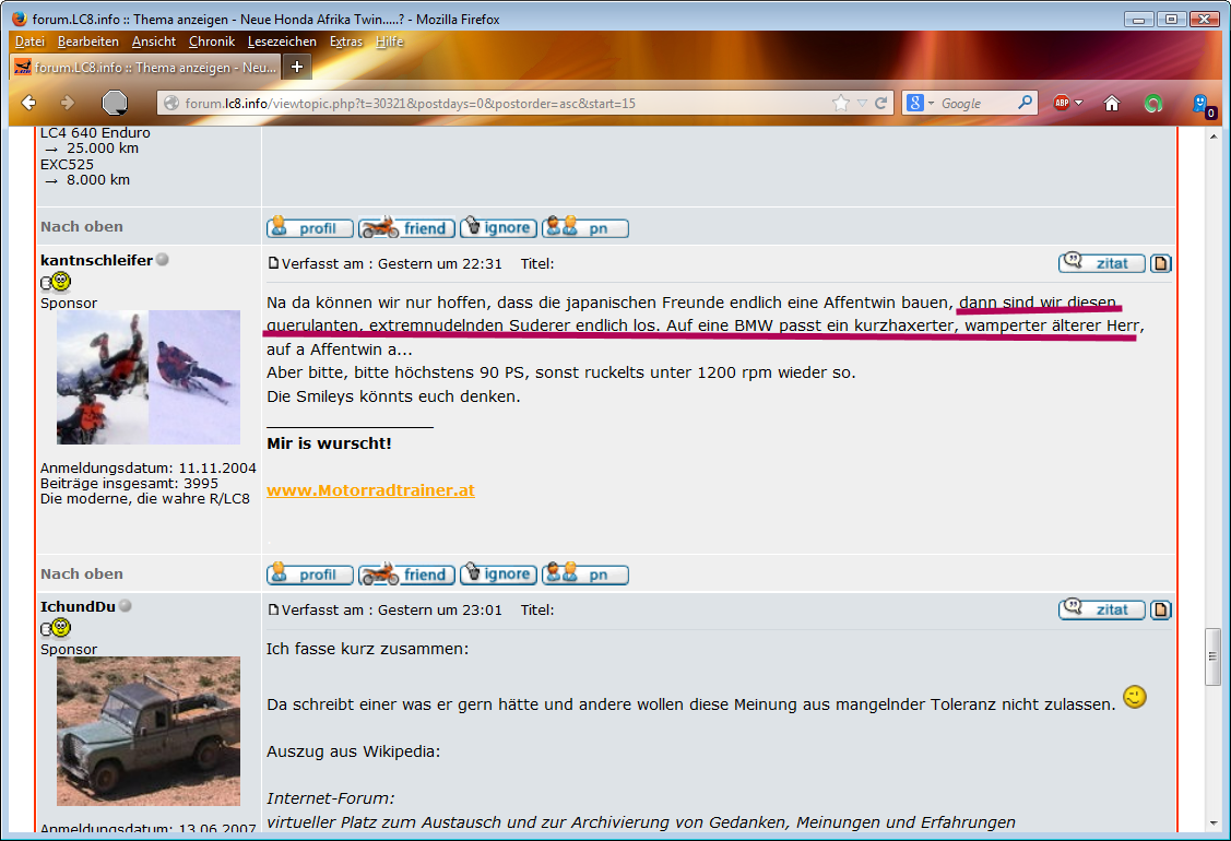 Und schon wieder werde ich auf das Übelste beschimpft. Siehst du IchundDu, das habe ich vorher gemeint. Auch wenn man es nicht sehen will, hier gibts wohl auch mit der großzügigsten Auslegung für keinen mehr einen Zweifel. Wie lange muss ich mir das noch gefallen lassen?