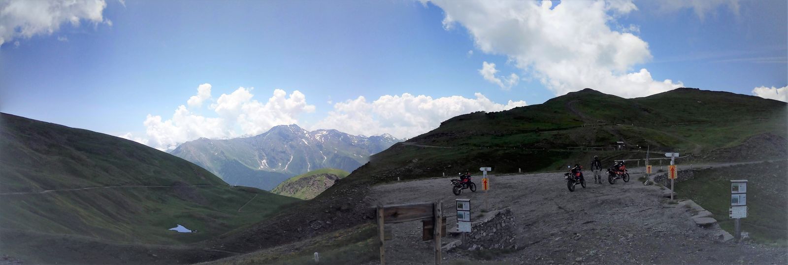 Anfahrt vom Kanton Bern Richtung Wallis am Freitag Nachmittag mit Zwischenübernachtung im wunderschönen Evionnaz (Herberge o.k. und sehr günstig für die Schweiz: 50CHF). Dann am Samstag bei 38°C "Abkürzung über eine Mountainbikepiste in Salvan/Le Cerisier nach Finhaut Richtung MontBlanc. Dann über Chamonix, Cormet de Roselend, Iseran, MontCenis, Susa zum Camping Gran Bosco in Salbertrand. Die Rally-Truppe hatte sich ja schon installiert und im Laufe der Woche trudelten noch mehr LC8ten und sonstiges Gebrumm ein. Wir haben dann gemütlich zu zweit ein paar Touren unternommen (Finestre/Assietta, Sommelier, Lago Nero) sind einmal mit der Truppe ausgeritten (wobei das hat sich nach zehn Minuten erstmal etwas verzögert weil eine 990er streikte), mit denen wir es dann doch noch bis Lac Mont Cenis hinaufgeschafft haben. Ich wie immer ganz hinten Lumpensammler gespielt und ein Franzose hat sich dann auch prompt in ein entgegenkommendes Affentwin-Paar verkeilt. Zum Glück nix schlimmes passiert ausser ein paar verbogenen Teilen, Schrammen und einer schockierten Sozia. Danach ward die Truppe vom Winde verweht und wir fuhren zu viert das nächste Refuge an, um die Plautze zu füllen. Wir sind dann gemütlich weitergfahren (Mont Cenis - echt lässig da oben) und haben den Nachmittag ausklingen lassen. Mein Bedarf an Grossgruppe war dann erstmal wieder gedeckt, woraufhin wir am nächsten Tag eine Tour zum Lago Nero (Hammer!) machten. Irgendwann sind wir dann auch noch das Valle d'Argentere (auch ganz toll) hochgefahren - das kostet zwar 3€, aber das ist es wert. Zwischendrin mal die Gegend erkundet und ein paar Sackgassen gefinden.