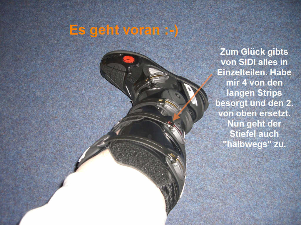 Habe mir 4 von den langen Strips besorgt und den 2. von oben getauscht. Nun bekomme ich den Schuh so "halbwegs" zu ...