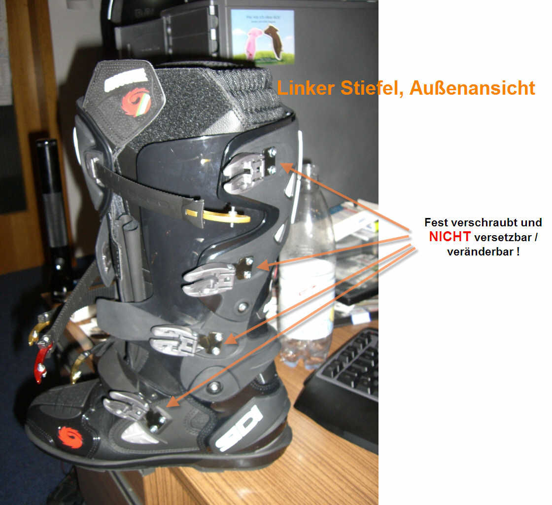 Ich habe Dir mal ein paar Fotos vom Stifel gemacht. Leider kann man bei dem die Protektoren nicht so wie von Dir beschrieben verstellen. Man kann zwar jedes Teil ein uns ausbauen, aber erweitern und verkleinern ist nur bei einem Plastikteil möglich, da sind 2 Bohrungen vorgegeben, siehe letztes Bild.