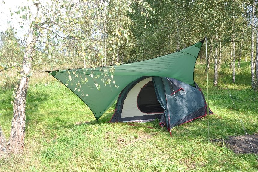 Das Arc Tarp bietet bei Regen einen trockenen Vorplatz und bei Sonne ein