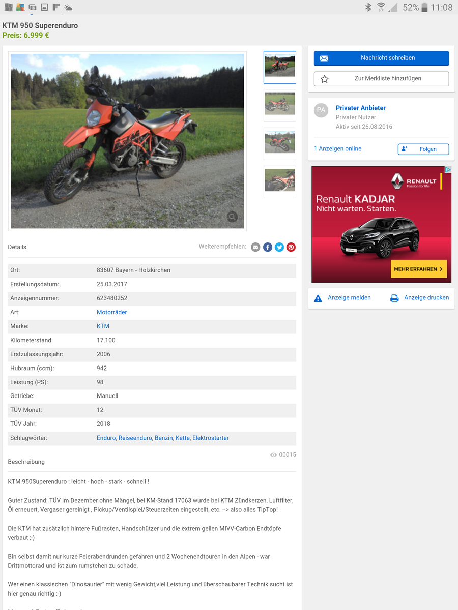Anmeldungsdatum: 13.08.2003 Beiträge insgesamt: 5027 KTM LC8 Adv 950 S, 2003 → 107.000 km