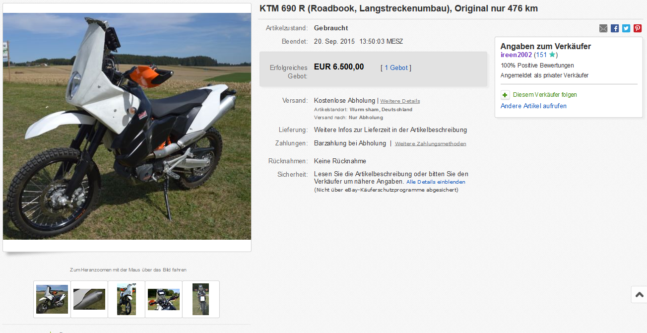Hier wurde eine sehr schöne 690er versteigert und angesichts des Zubehörs und der Laufleistung ist der Preis absurd niedrig.