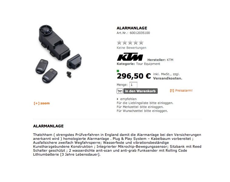 3. Kann ich bei KTM oder wo anders solche stecker kaufen, sodass ich die Alarmanlage ins Heck verpflanzen kann, da der Alarmanlagenstecker ziemlich kurz ist und ich doch lieber eine plug&play lösung hätte! |