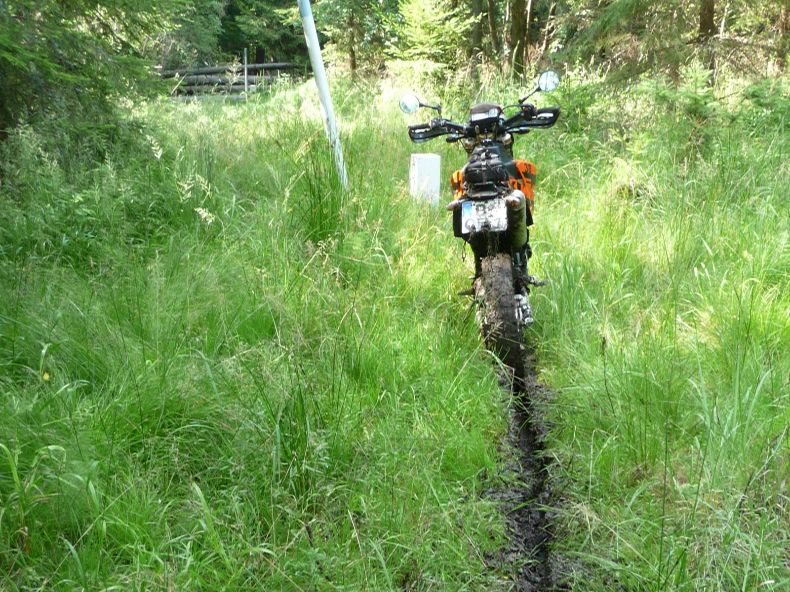 Gestern Abend waren Matze und Ollo ganz euphorisch von der megagoilen Endurostrecke im Kötztinger Land. Jede Menge Offroad in 3D (so was haben wir in Brandenburg nicht) und sehr entspannte Landwirte, die gegrüßt haben statt zu schießen. Die Tagesstrecke haben sie mit etwa 20 km pro Stunde geschafft, das spricht Bände (über die Strecke oder die Fahrer je nach Sicht der Dinge Mr. Green ).