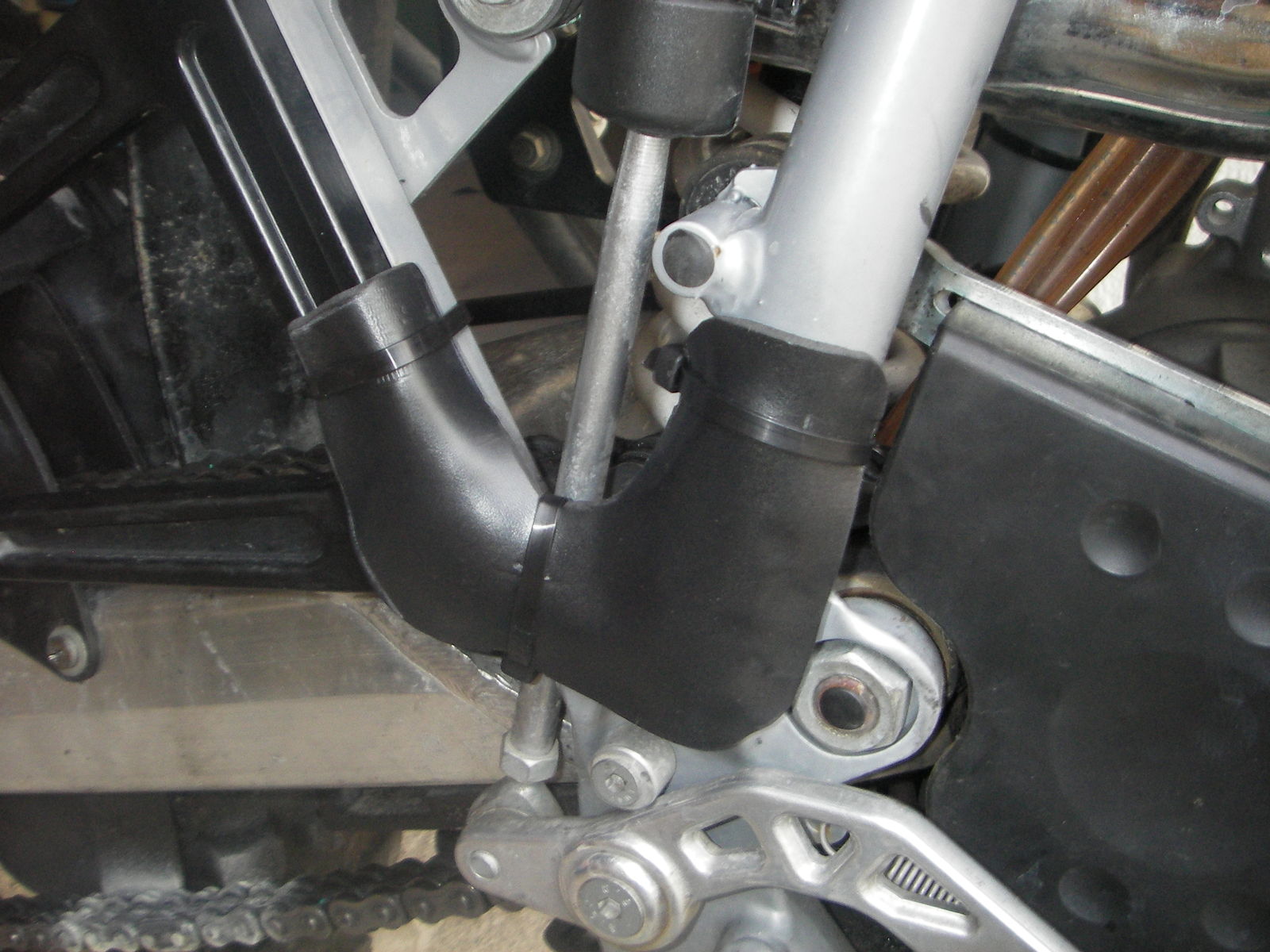 Außerdem ist das jetzt die gewünschte 2 Sitzer-Version. Die Mutter die die Schwingenachse hält, habe ich bewusst nicht mit dem Rahmenschützer überdeckt, denn es gibt bei allen Rahmenschützern, die man kaufen kann(bsp. Acerbis) das Problem, dass der Kickstarter zum einen, wenn er voll eingeklappt ist und zum anderen beim Kicken am Schützer schleift.
