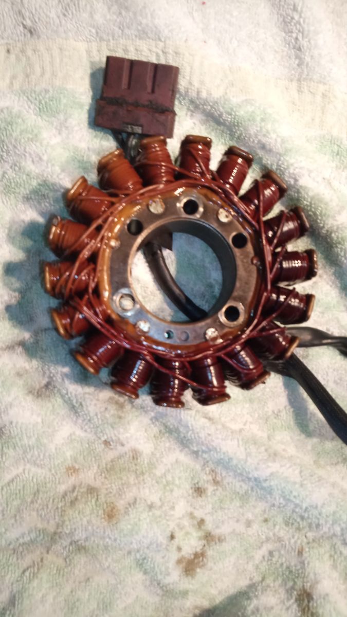 miss aber zur sicherheit nochmal am stator kabel: die drei kabel alle jeweils gegeneinander messen und es sollten jeweils o ohm dabei rauskommen; wenn mehr dann eindeutig defekt!