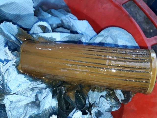 Die erste Spülung mit neuem Öl ist gemacht, das kam dann warm doch immer noch sehr dünn raus, wie mit Wasser vermischt.