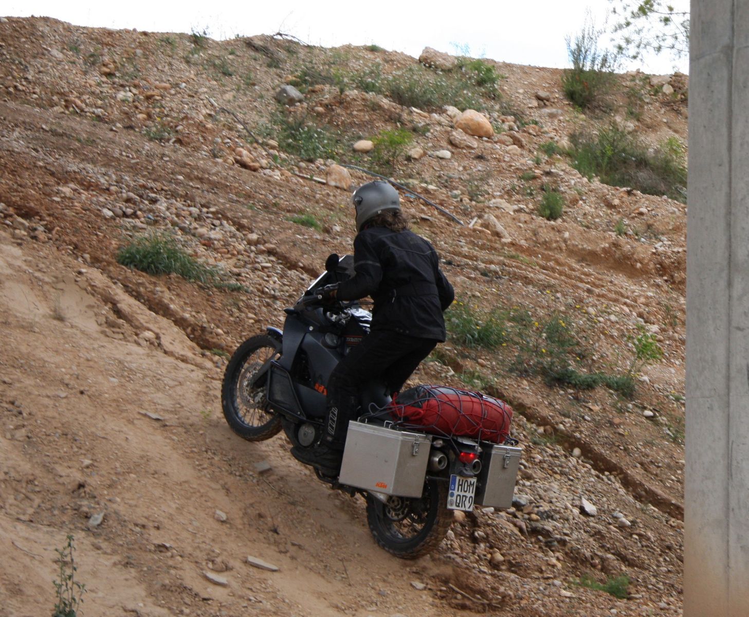 | Bauarbeiten. Der den Daumen reckt, warnte mich, weiter hinten sei der Weg sehr schwierig zu fahren. Ach was, dachte ich, ich fahre doch eine KTM. Er hatte recht. |