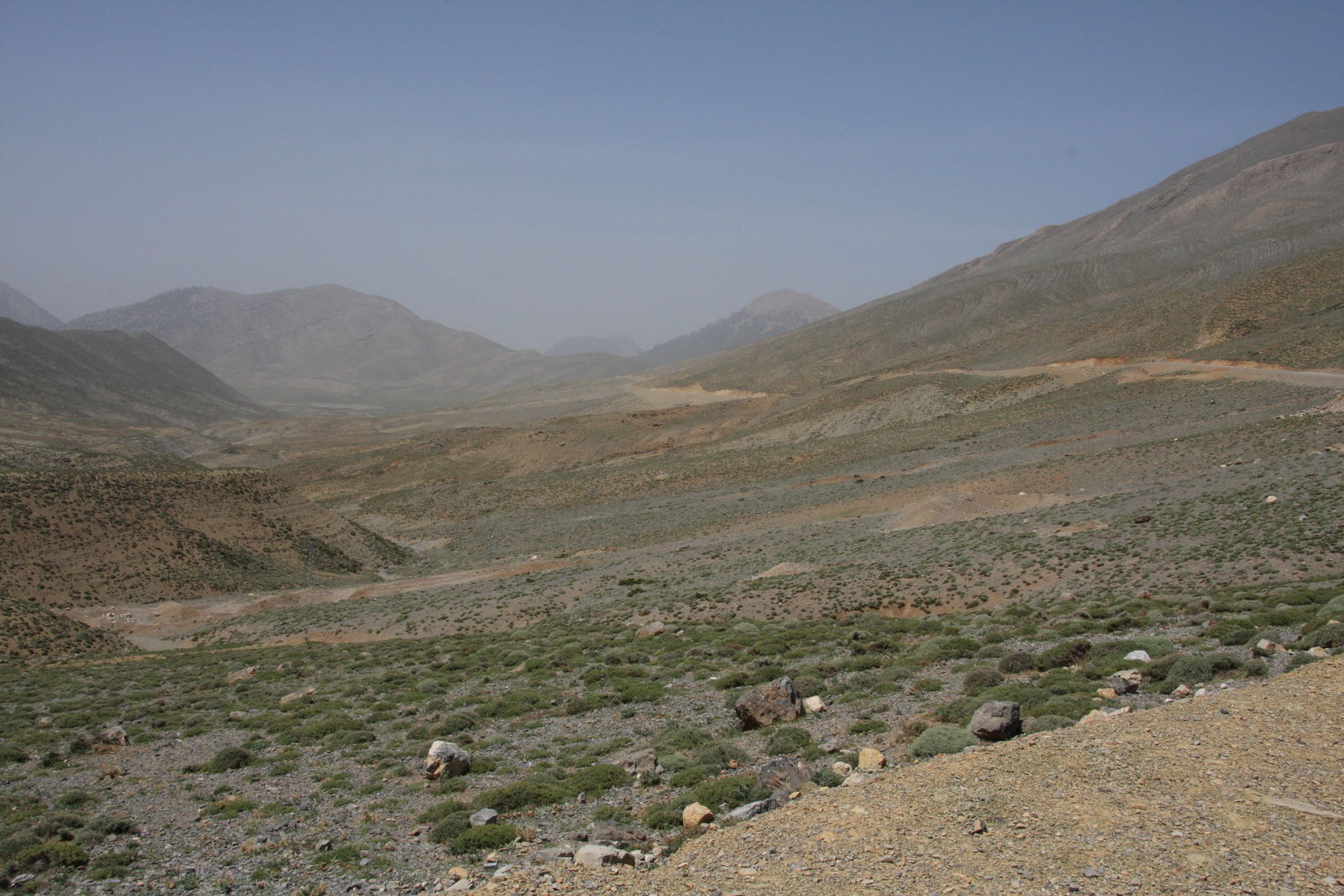 | Weites Tal auf über 2000m NN. Von hier wären wir gerne eine weitere Piste gefahren, wurden aber gewarnt, sie sei unfahrbar. Für Experimente reichte der Sprit leider nicht. |