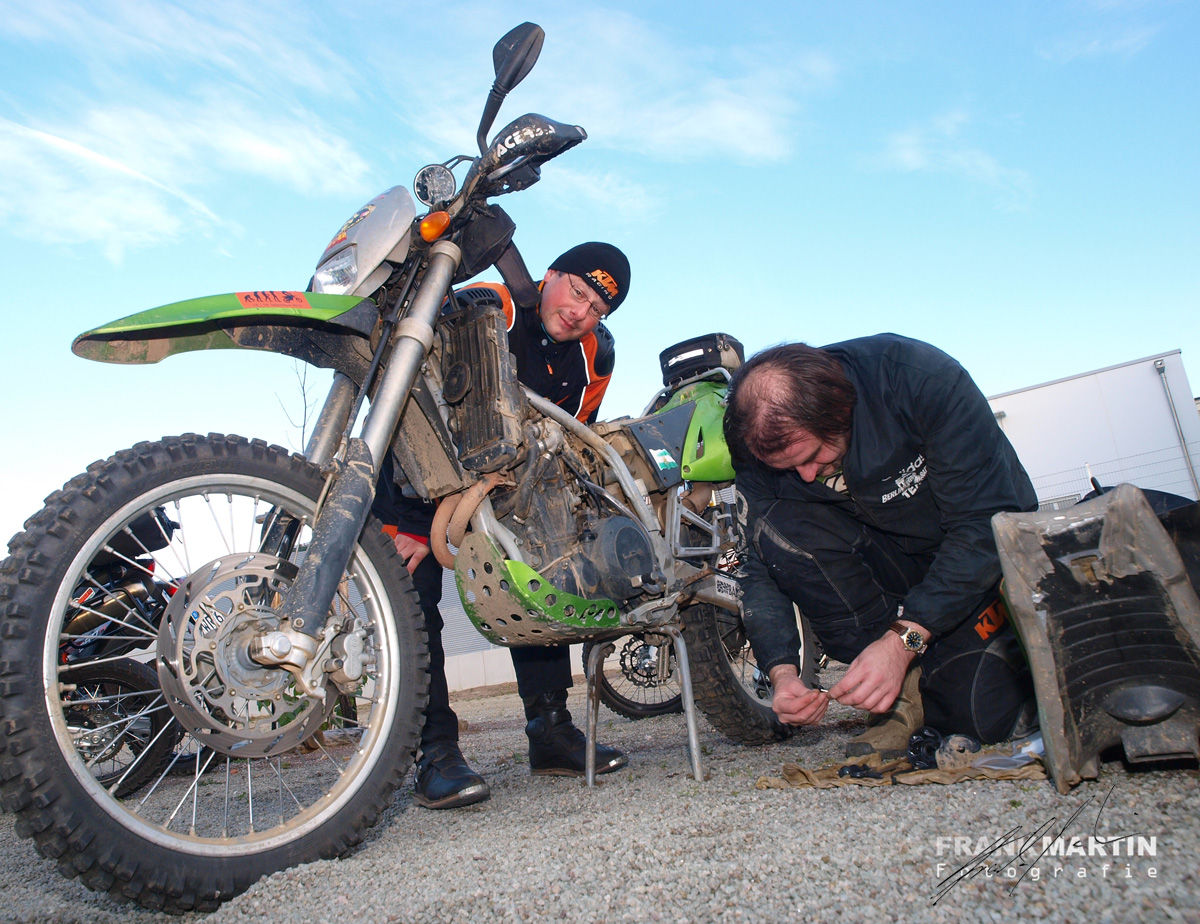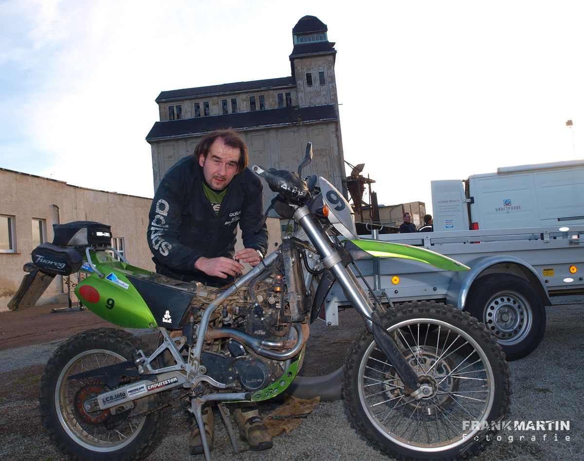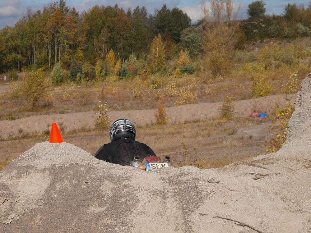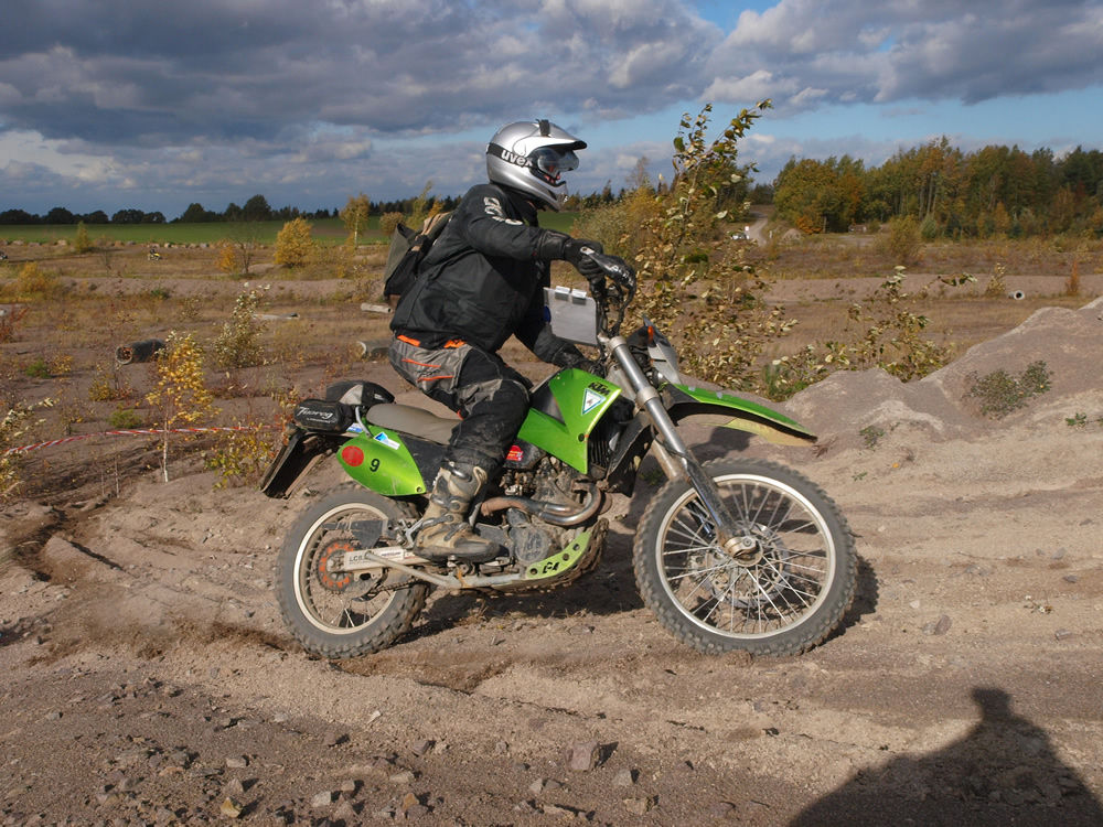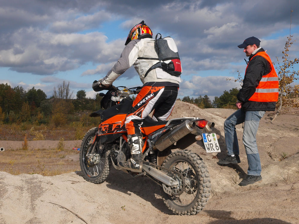 Mit der Nadel brachten wir sie zum Laufen, sprang aber schlecht an und fuhr max. als Heimbringer. Am So. brachte mir der Torsten eine neue Originalnadel mit und ermöglichte dadurch meinen Start in letzter Minute, besten Dank nochmal !!! Als erstes gleich SP mit Wippe und mittels Rampen über eine LKW-Ladefläche. Später gabs dann noch die obligatorische Wasserdurchfahrt und WP in der Melzer Grube. Ohne Erwartungshaltung recht gut gemeistert fuhr ich die Rallye bis zum Schluss durch mit dem gleichen Ergebnis wie die letzten zwei Jahre. Zusammen mit dem Thomas mit seiner neuen und eingeweihten 690 R gings zügig zurück.