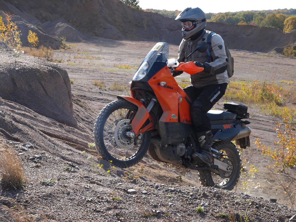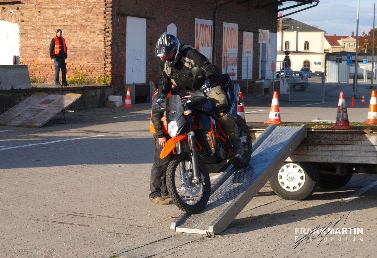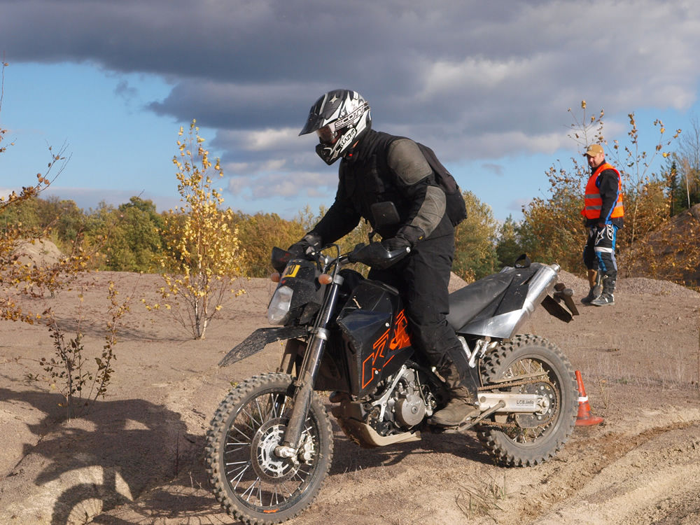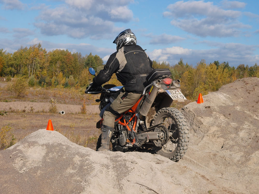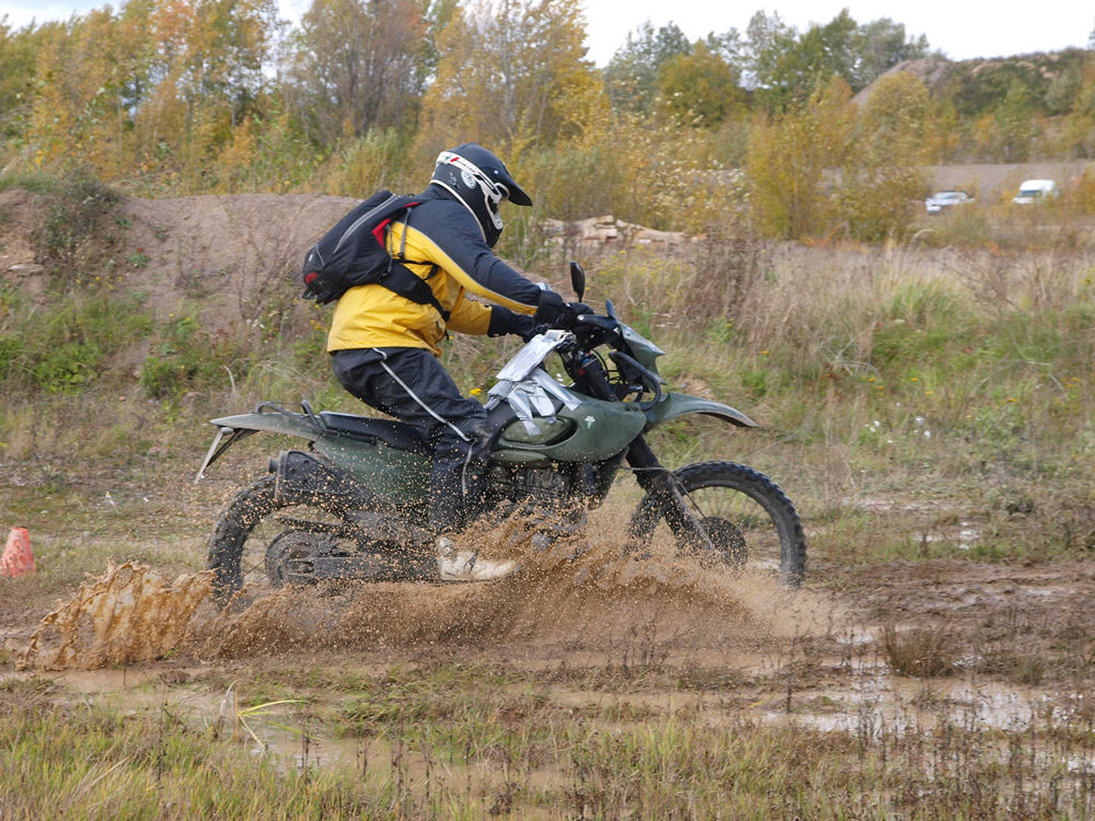 Mit der Nadel brachten wir sie zum Laufen, sprang aber schlecht an und fuhr max. als Heimbringer. Am So. brachte mir der Torsten eine neue Originalnadel mit und ermöglichte dadurch meinen Start in letzter Minute, besten Dank nochmal !!! Als erstes gleich SP mit Wippe und mittels Rampen über eine LKW-Ladefläche. Später gabs dann noch die obligatorische Wasserdurchfahrt und WP in der Melzer Grube. Ohne Erwartungshaltung recht gut gemeistert fuhr ich die Rallye bis zum Schluss durch mit dem gleichen Ergebnis wie die letzten zwei Jahre. Zusammen mit dem Thomas mit seiner neuen und eingeweihten 690 R gings zügig zurück.