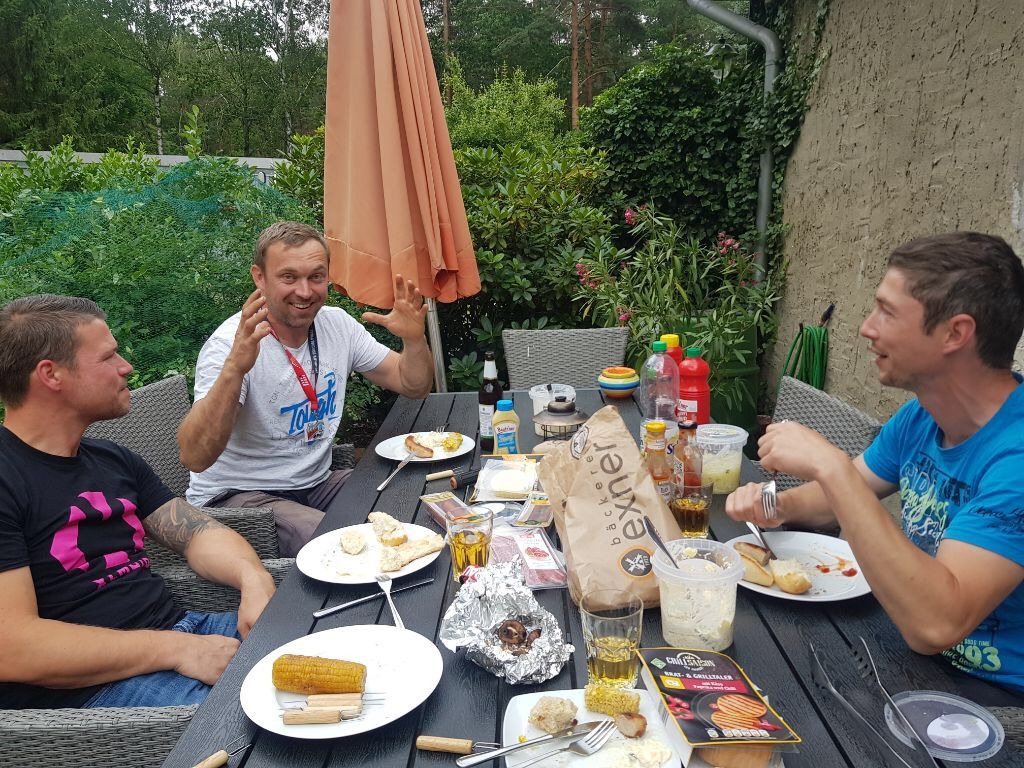 Er hat wie bereits vor einer Woche auch schon auf dem Grill alles zubereitet und dem großen Schlämmen steht nichts mehr im Weg.