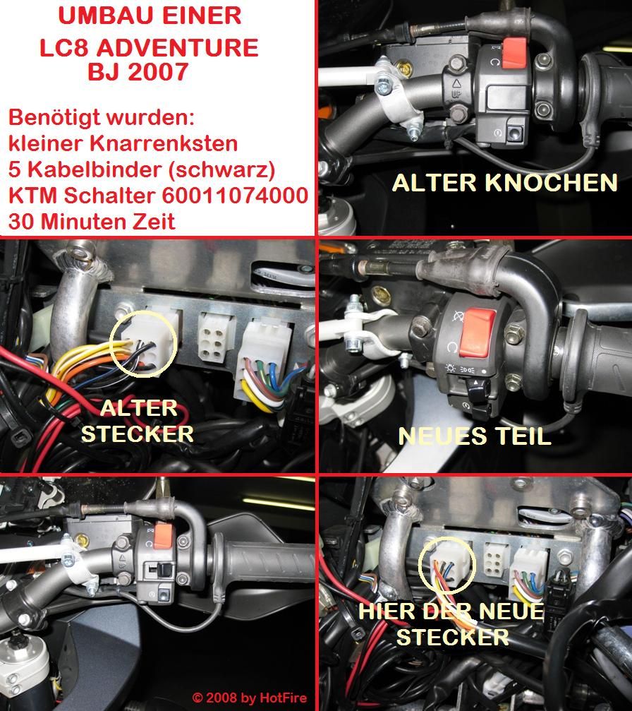 Ein Spezl und ein Nachbar von mir möchten beide an ihren 990 N ADV ABS ( x Bj. 11 und 1 x Bj. 12 ) einen Lichtschalter montieren.