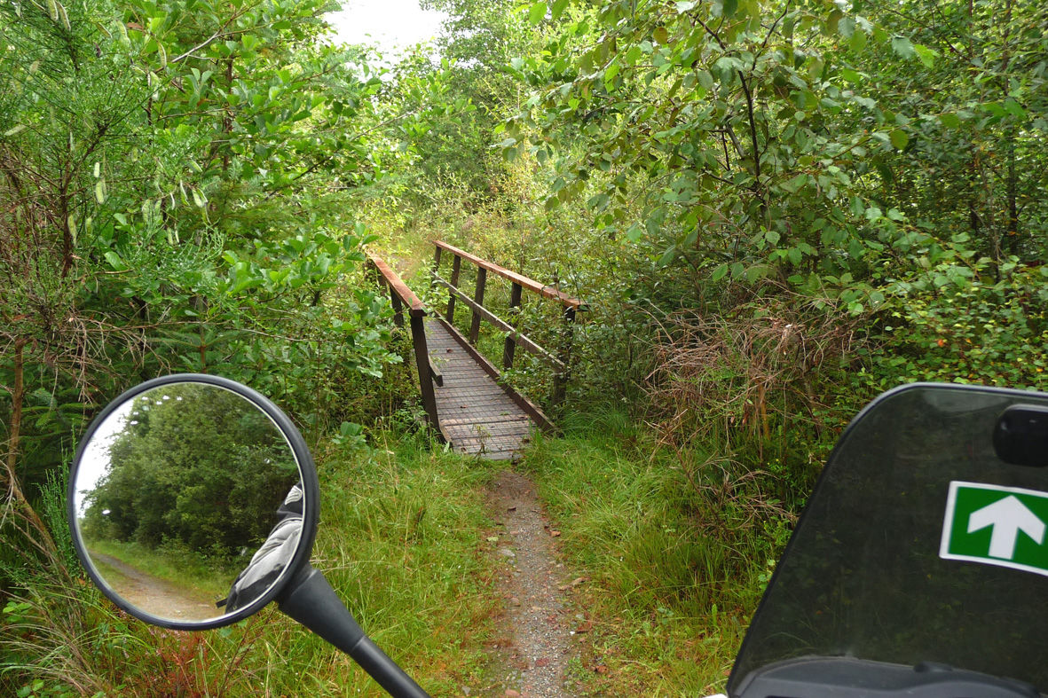 Glen Spean – auch das kommt vor: Brücke ca. 75cm breit und ein Lenker mit 86cm. Da bleibt nur noch der Griff zum Bordwerkzeug und die Tour durchs Unterholz kann weitergehen.