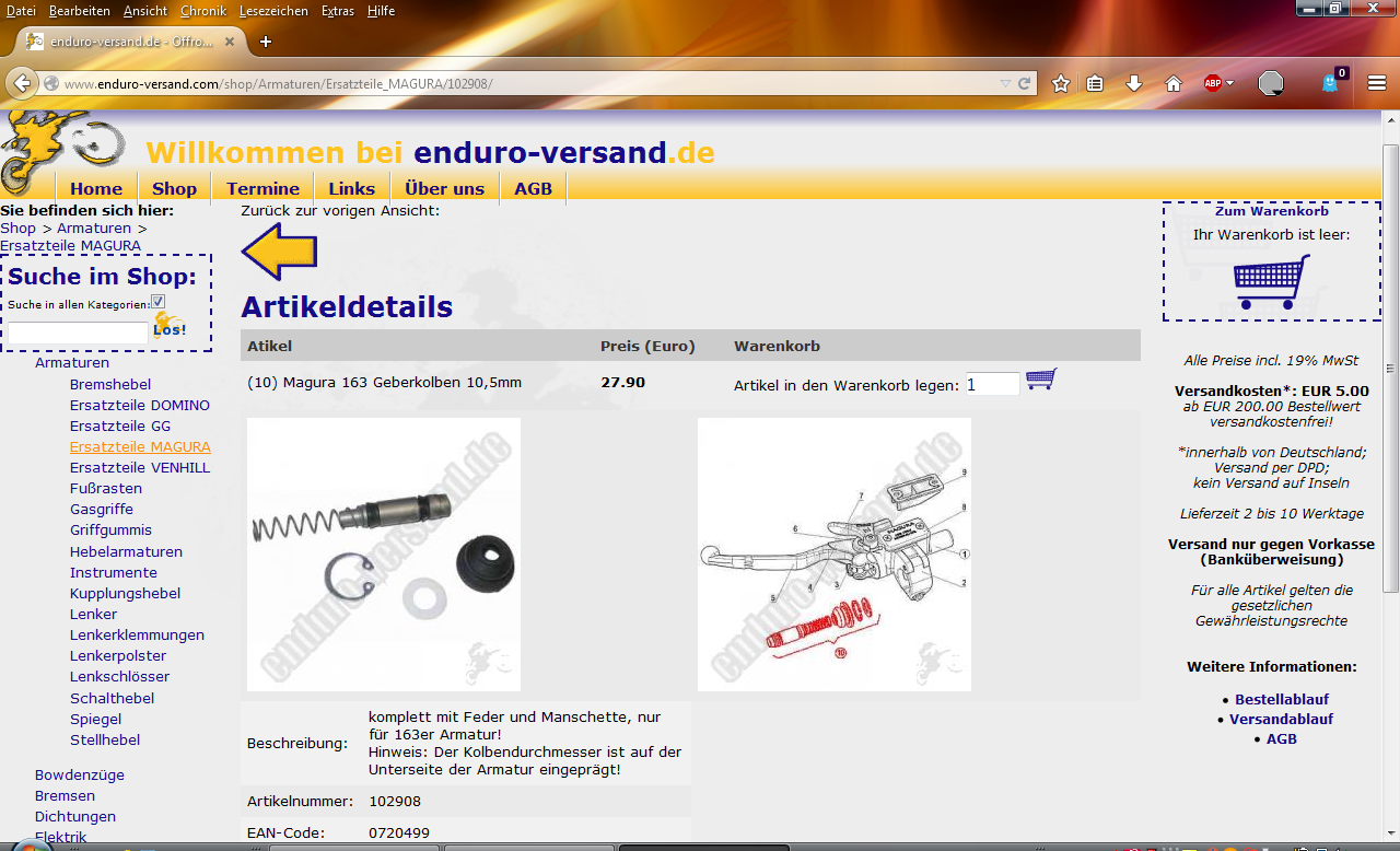 Habs jetzt aber bei Team West bestellt, kostet keinen Versand und somit fast gleich. Der Enduroshop ist etwas veraltet...keine abweichende Lieferadresse möglich, nur Vorauszahlung, kein Paypal...ne nich meins.