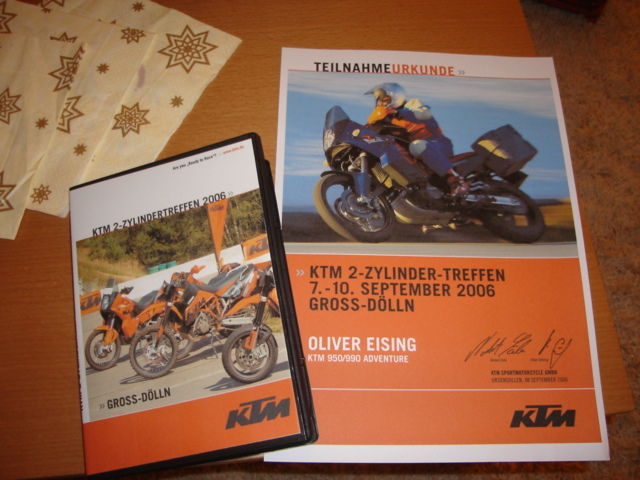 an alle Teilnehmer : DVD vom Treffen heuer angekommen und wie es sich in Deutschland gehört eine urkunde unsure aber wieder mit falschem Namen ...