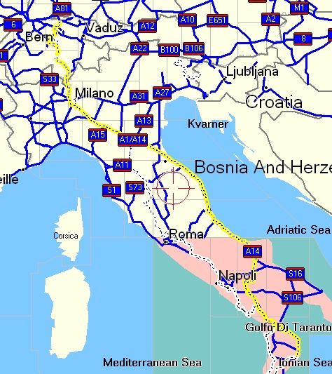 Beachte die Höhe des Apenin im Süden!