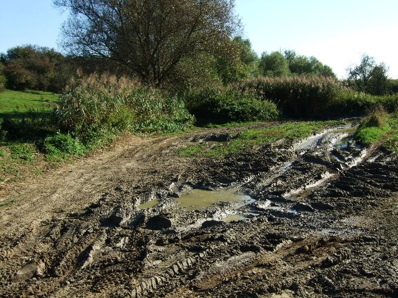 Auffahrten mit tiefen Spurrillen und Schlamm im Anlaufbereich