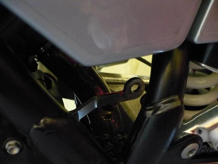 Die Kettenrolle hat den Sinn, dass die Kette bei voll eingefedertem Hinterrad nicht den Tank, oder Ausgleichsbehälter des Federbeins anfräst.