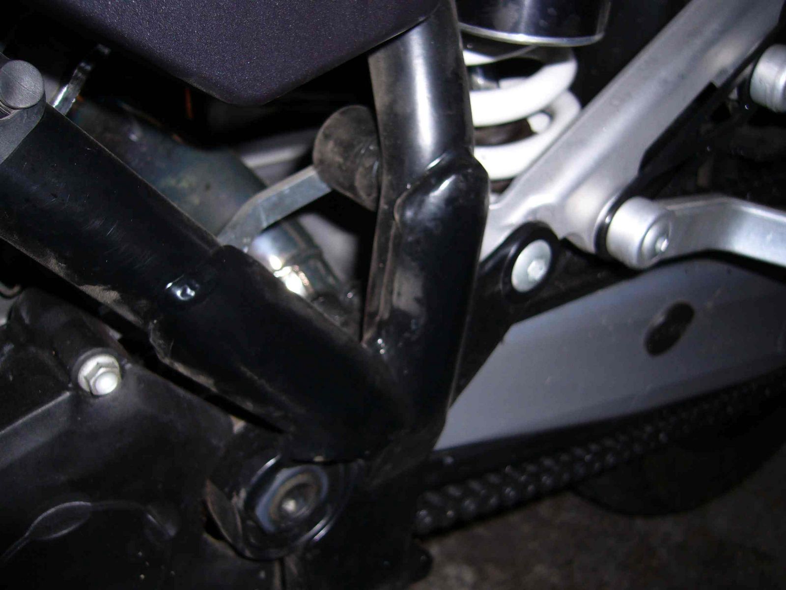 Die Rolle und die Schraube fehlen, gehört zur Kettenführung.