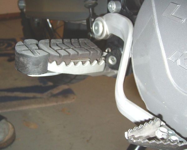 Die zackige Bremshebelbetätigung habe ich schon mit einem Frästeil ca.1,5 cm verbreitert, Vorteil : Der Stiefel trifft nicht nur die äussere Spitze des gezackten Bremshebelbetätigers, sondern über die Hälfte davon, der Stiefel kratzt auch nicht am Motordeckel.
