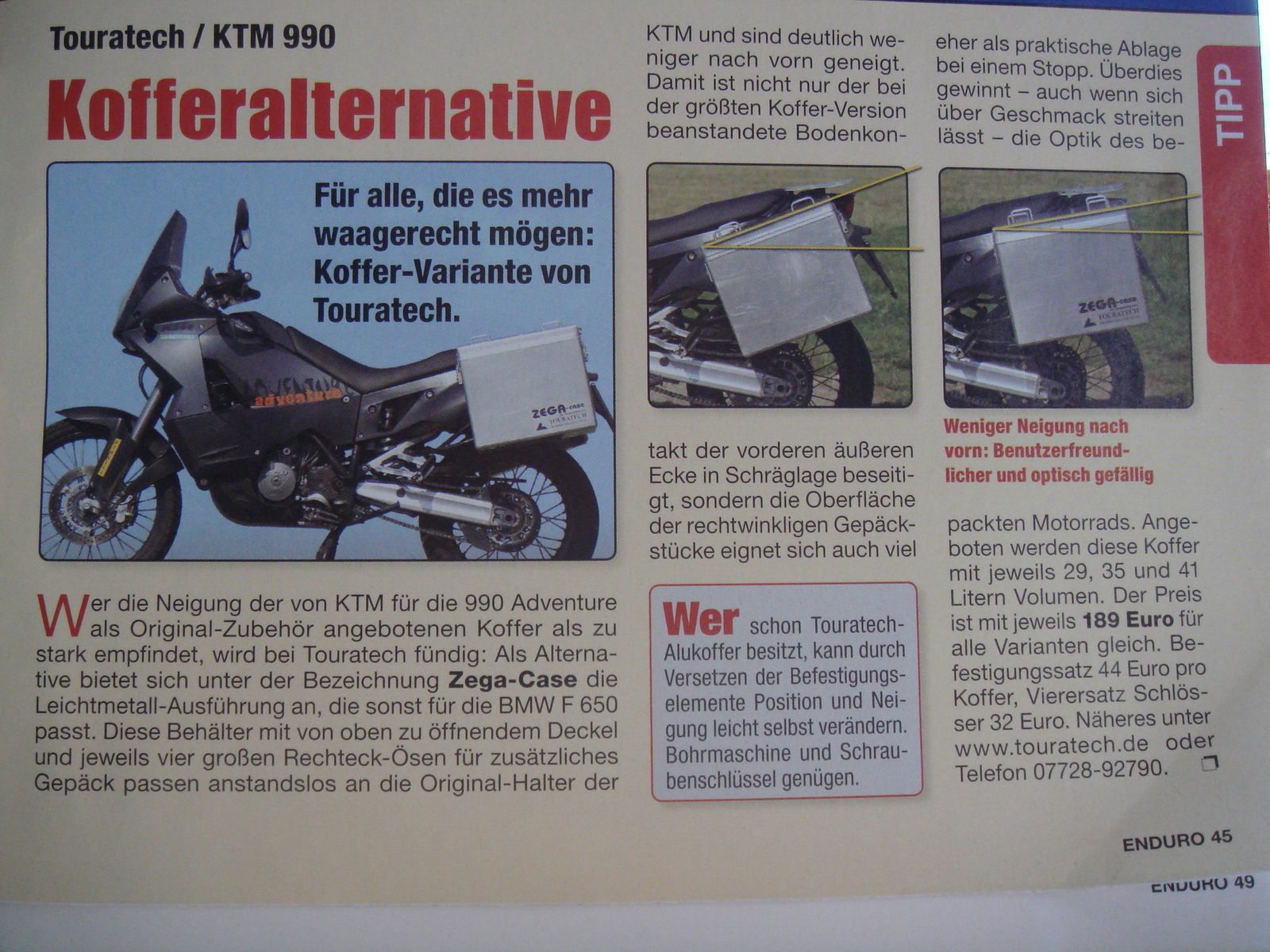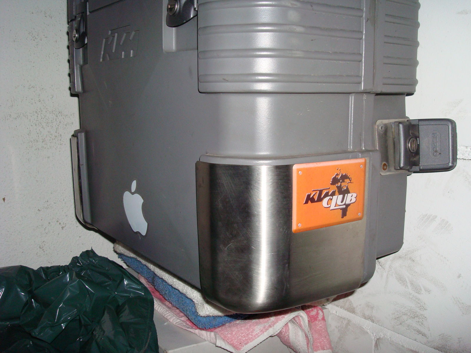 Sie sind um einiges höher, müßte mit den Orginal KTM-Koffern auch gehen. An der Außenwand ein neues 1,5 mm starkes Alublech zur Verstärkung mit Silikon und ein Paar Schrauben befestigen ( Koffer sind wesendlich stabiler).