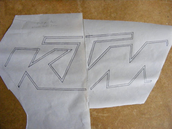 Mein Werbeschriften Heini kann mir das KTM Logo in jeder Grösse und Farbe liefern. Kostet gar nicht mal so viel. Aufkleben ist dann auch kein Problem mehr. Auch nicht auf einer Rundung. Gib das Teil gleich dem Werbefritzen zum Kleben, dann ist es perfekt.