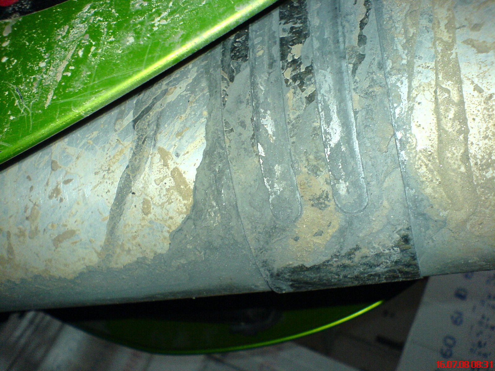 So siehts vor dem Saubermachen von der Seite aus, die nicht durchs Rad gewaschen wird. Das schwarze Zeugs macht allerdings eher den Eindruck von Abrieb.