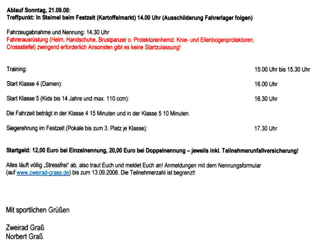 Unser hiesiger Freundlicher macht jedes Jahr ein cooles Hobby-Enduro/Cross Rennen, gleichzeitig zum "Kartofflesmarkt" (Jahrmarkt) in Steimel im Westerwald.