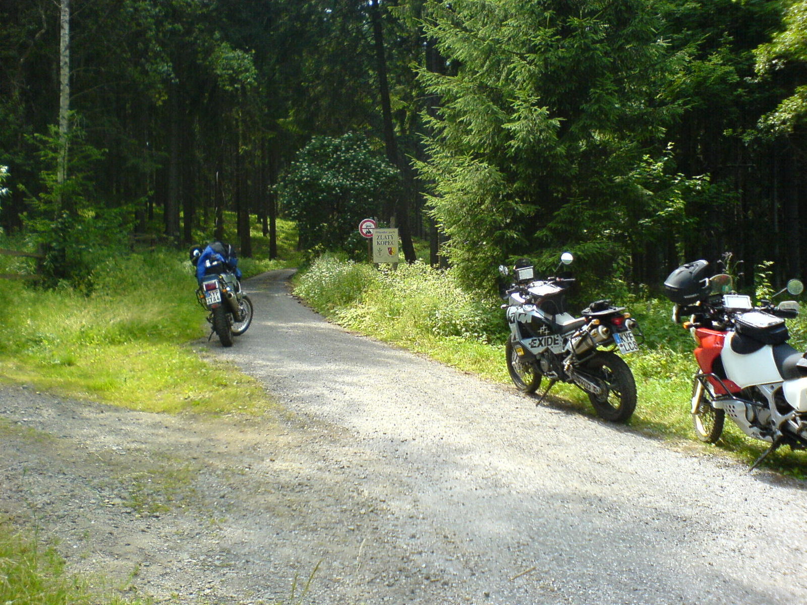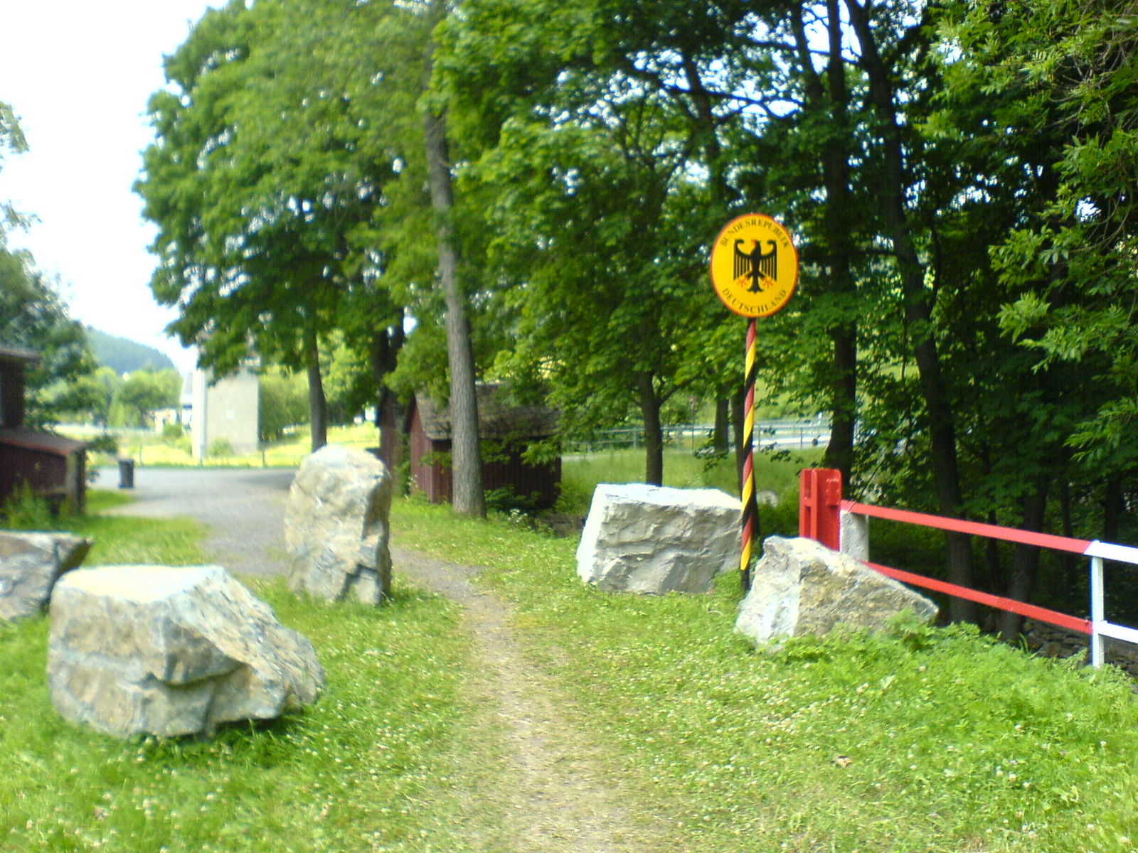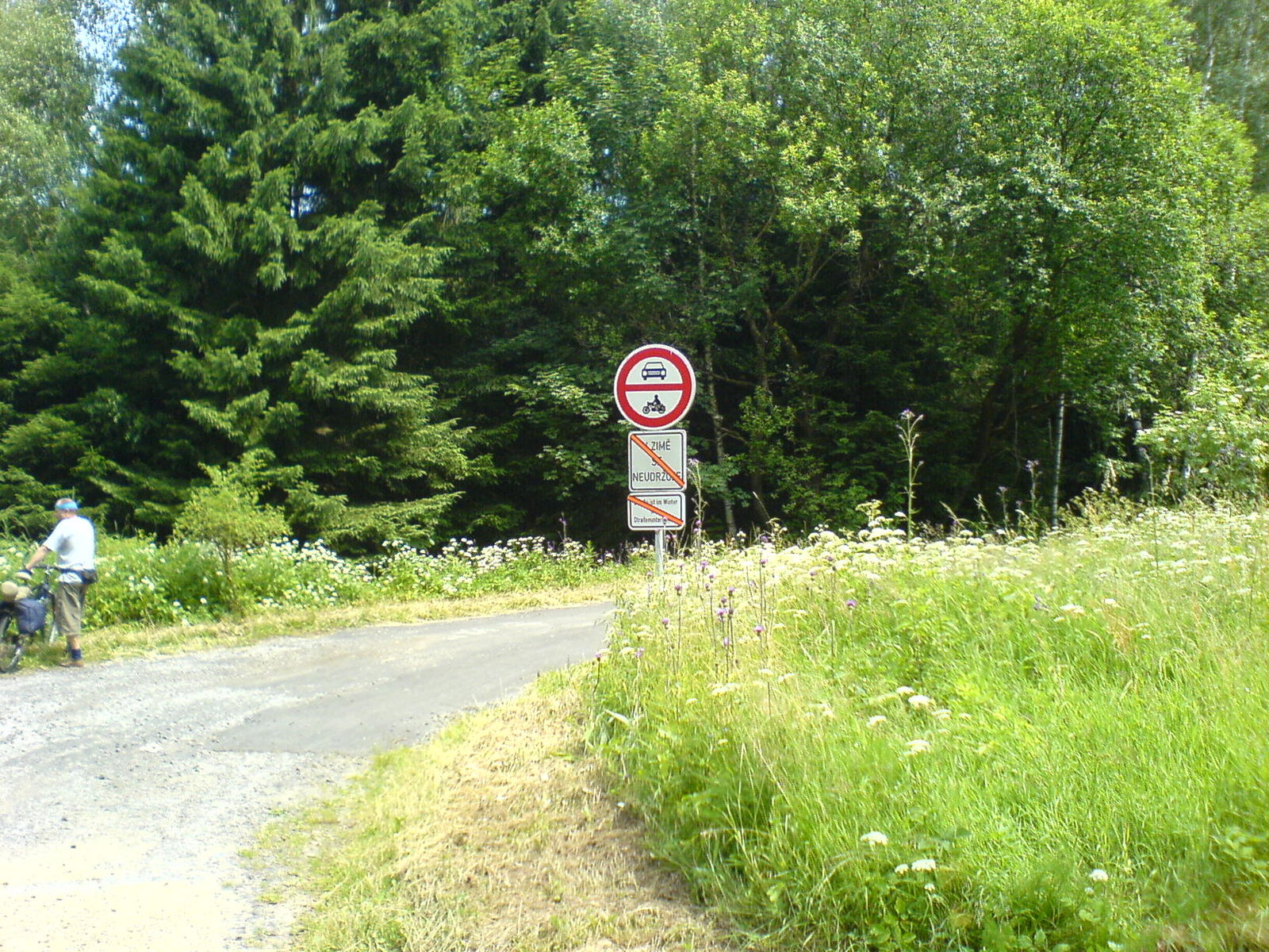 ... mal ein paar Bilder von unserer letzten Tour entlang der DDR/CZ Grenze und von einem "Öko- (weil man spart ja viele km Umweg ) Naturgrenzübergang. Achso ; bei der Einfahrt in den Weg standen übrigens keine Schilder außer ein Sackgasse-Schildchen , und da wir ja dann eingekesselt waren (siehe Beschilderung) blieb uns nur der Weg über die Grenze