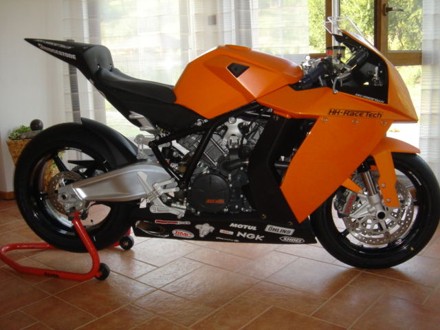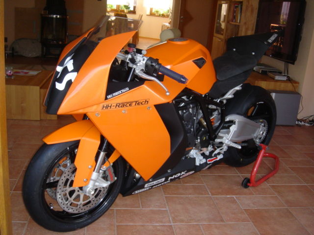 Im Juli war das KTM Team mit der RC 8 in Brünn auf der Speer VA, als ich das Moped gesehen habe und den Klang hörte musste das Ding ins Haus.......... Die Jungs sind dort 2.06,5 damit gefahren