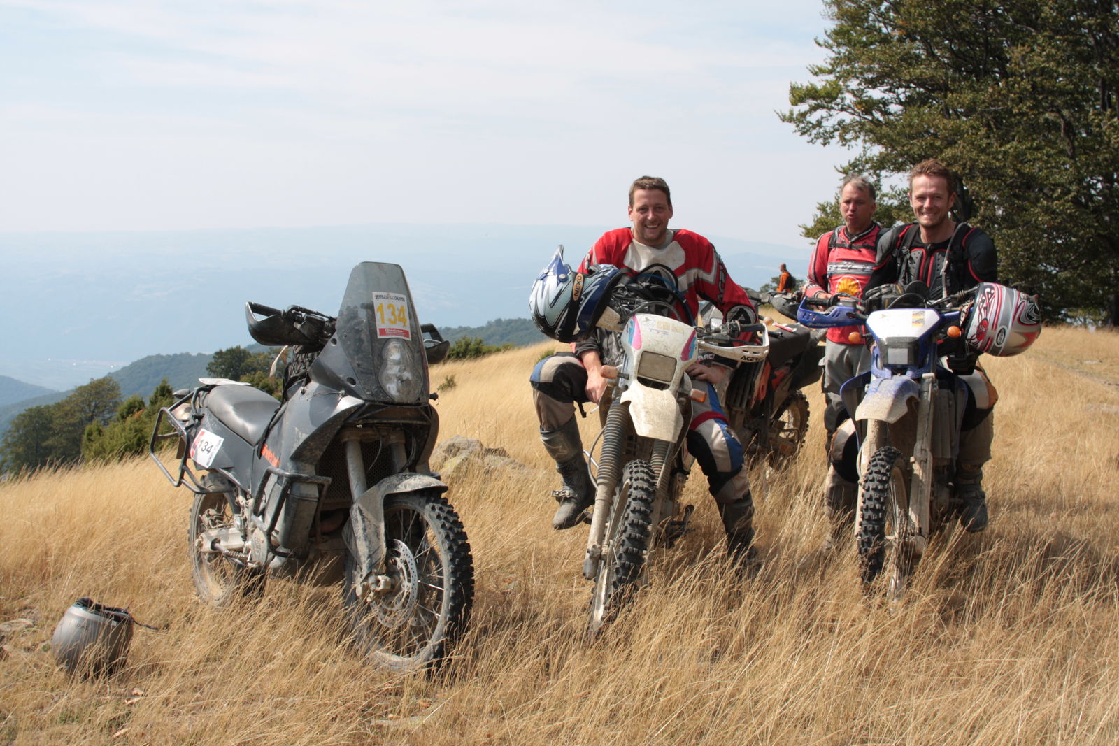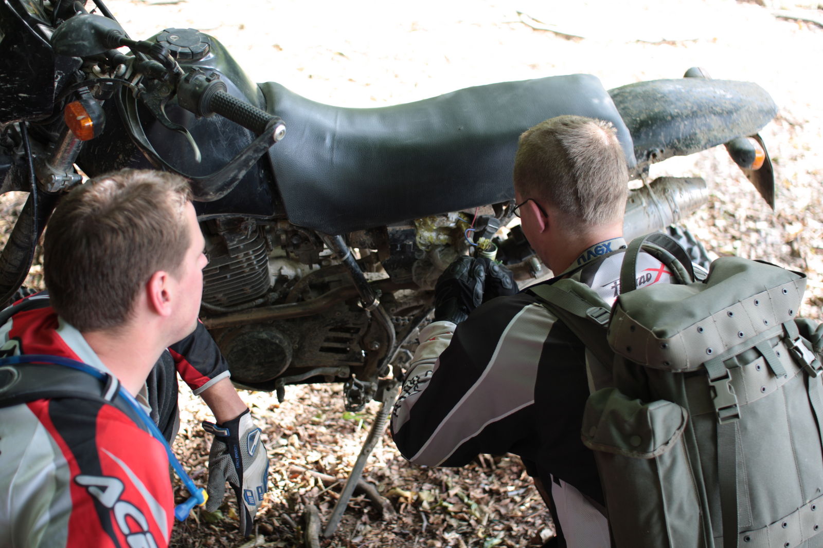 Heute stoßen zwei erfahrene Enduromaniacs zu uns, Thimo und Bertl. Sie waren gestern noch zu dritt, aber ihr dritter Mann ist unglücklich mit einem Ast kollidiert und braucht eine Weile Pause.